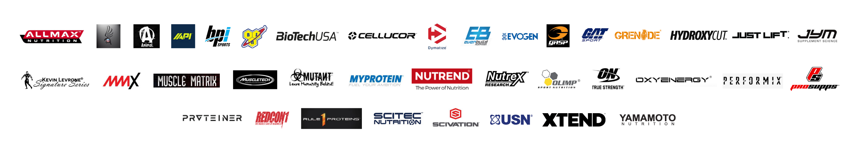 Due to Malaysia has a large number of fitness enthusiasts .We corporate with many brands distributors to distribute their brands and create brand awareness in Malaysia. For instance, API, BPI , BSN , CELLUCOR , DYMATIZE , EverBuild Nutrition , EVOGEN , Nutrend , Performix , America Pharma, Optimum Nutrition , BSN , Scivation, MyProtein , MuscleTech and many more brands.