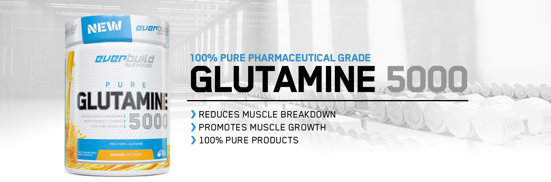 Everbuild Glutamine 5000 provides the L-glutamine amino acid in its purest form. It is the most common amino acid in the blood plasma which can be observed in over 60% of the organism’s amino acid pool.