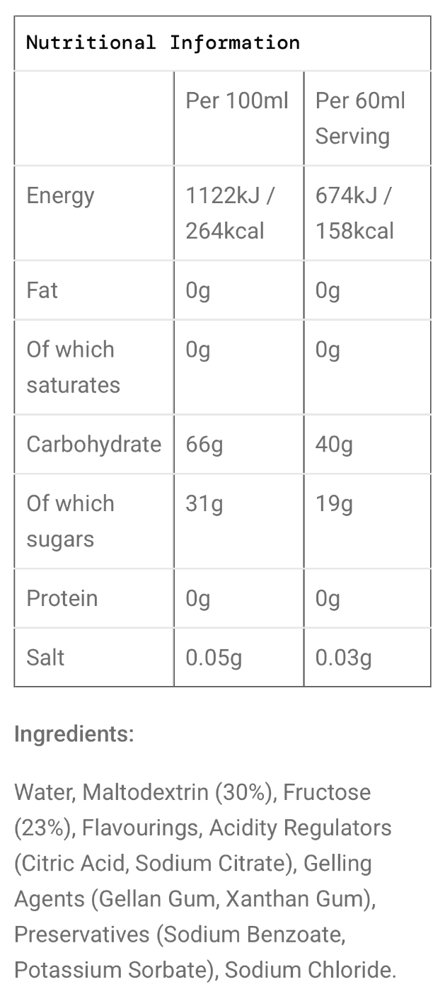 Depending on your sport or event, you should aim to consume 1-3 gels every hour to reach an 80g-120g target intake. Simply tear off the top of the packaging and squeeze the contents into your mouth as and when required.