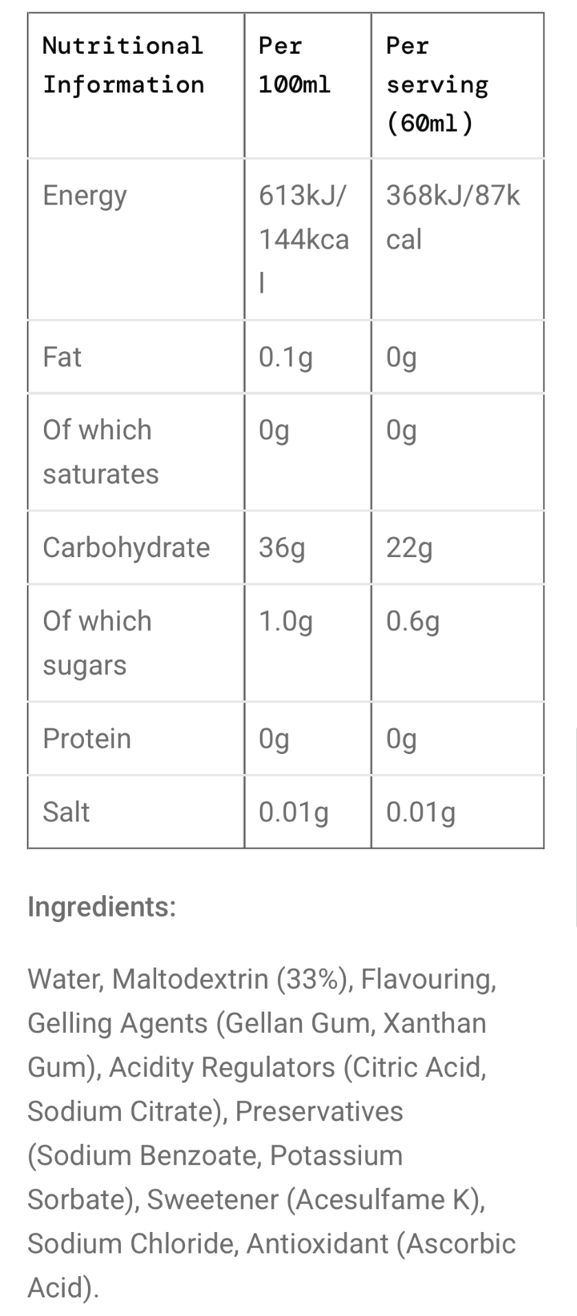 A liquid carbohydrate energy gel created using maltodextrin
