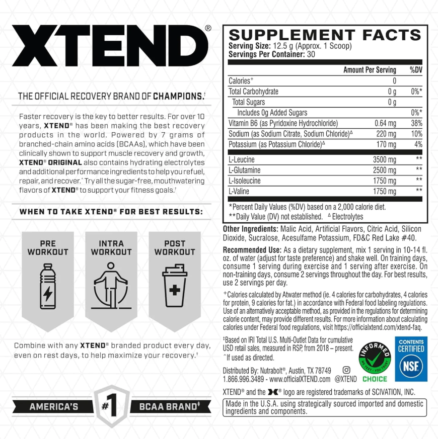 XTEND Original has been the go-to recovery product for athletes, lifters, and fitness enthusiasts for more than a decade. Offering mouth-watering flavors with zero sugar and 7 grams of BCAAs, XTEND Original supports muscle recovery and hydration.